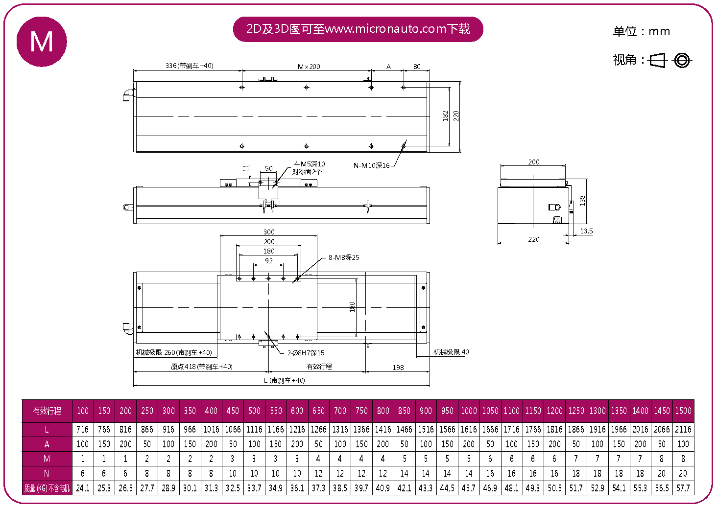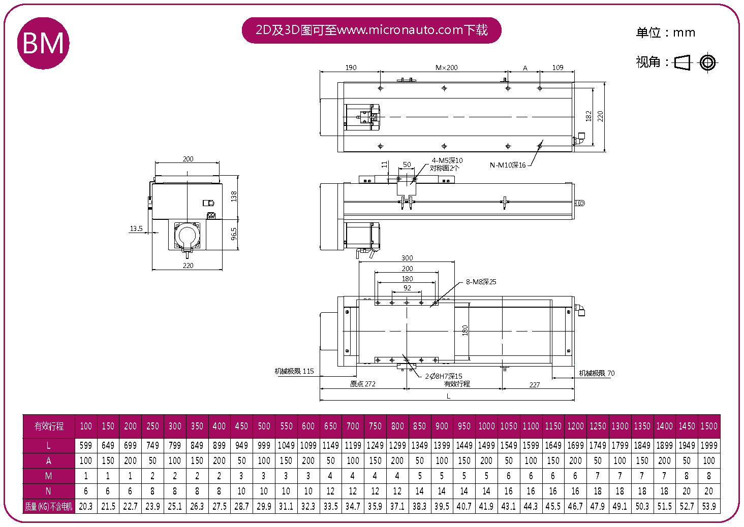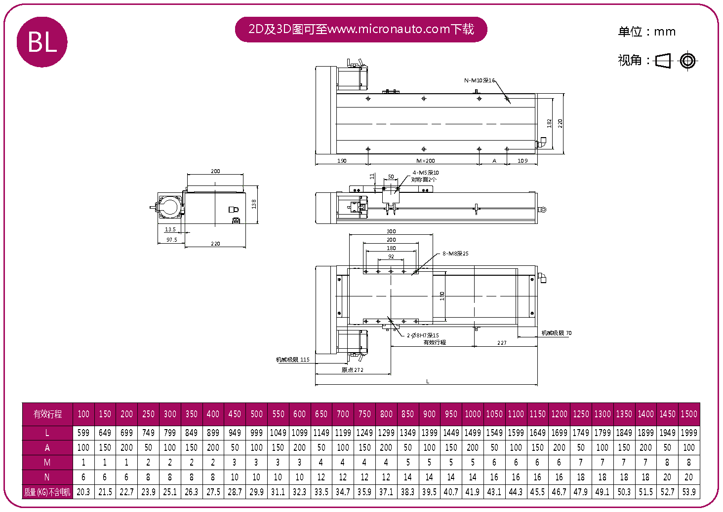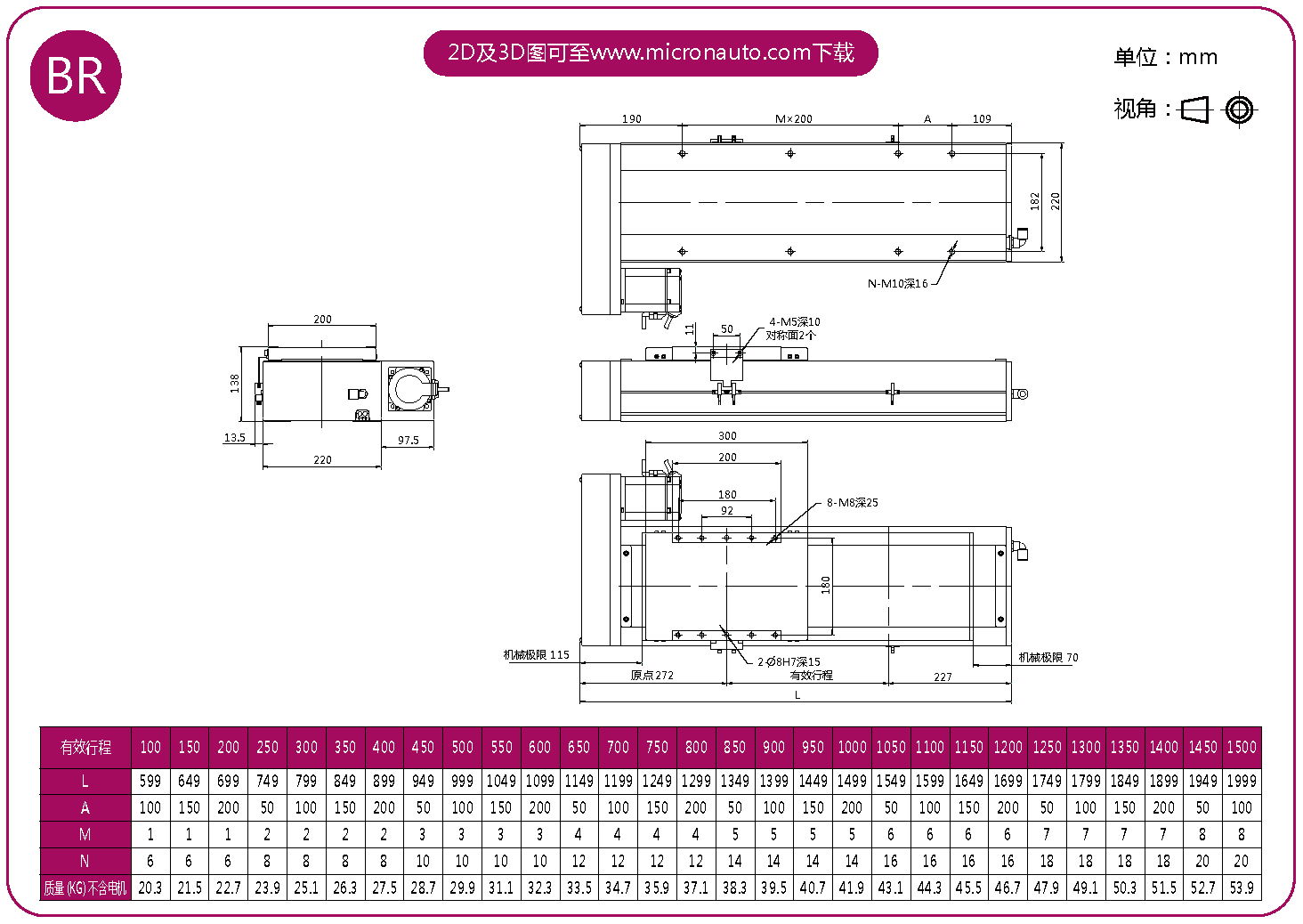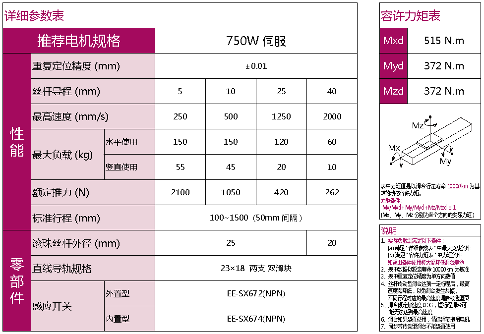標(biāo)準(zhǔn)有效行程: 100~1500mm(間隔50mm)
