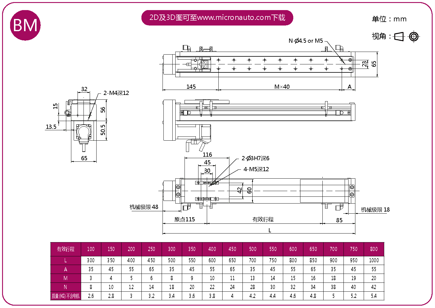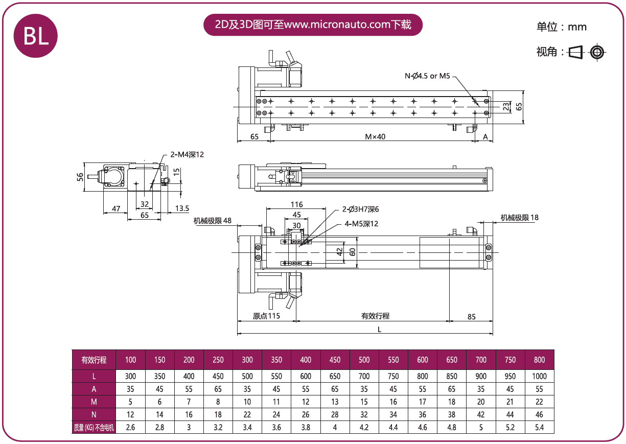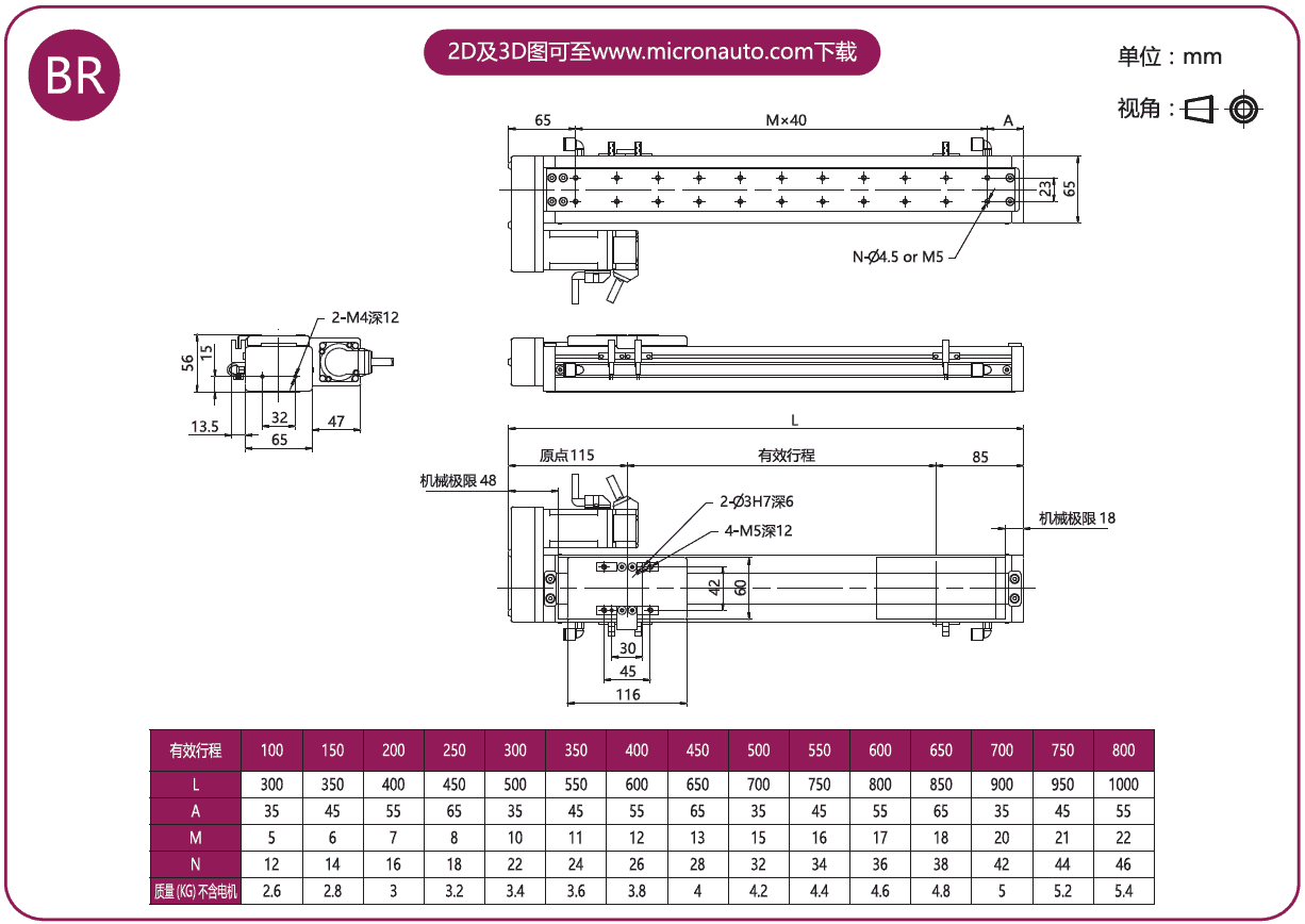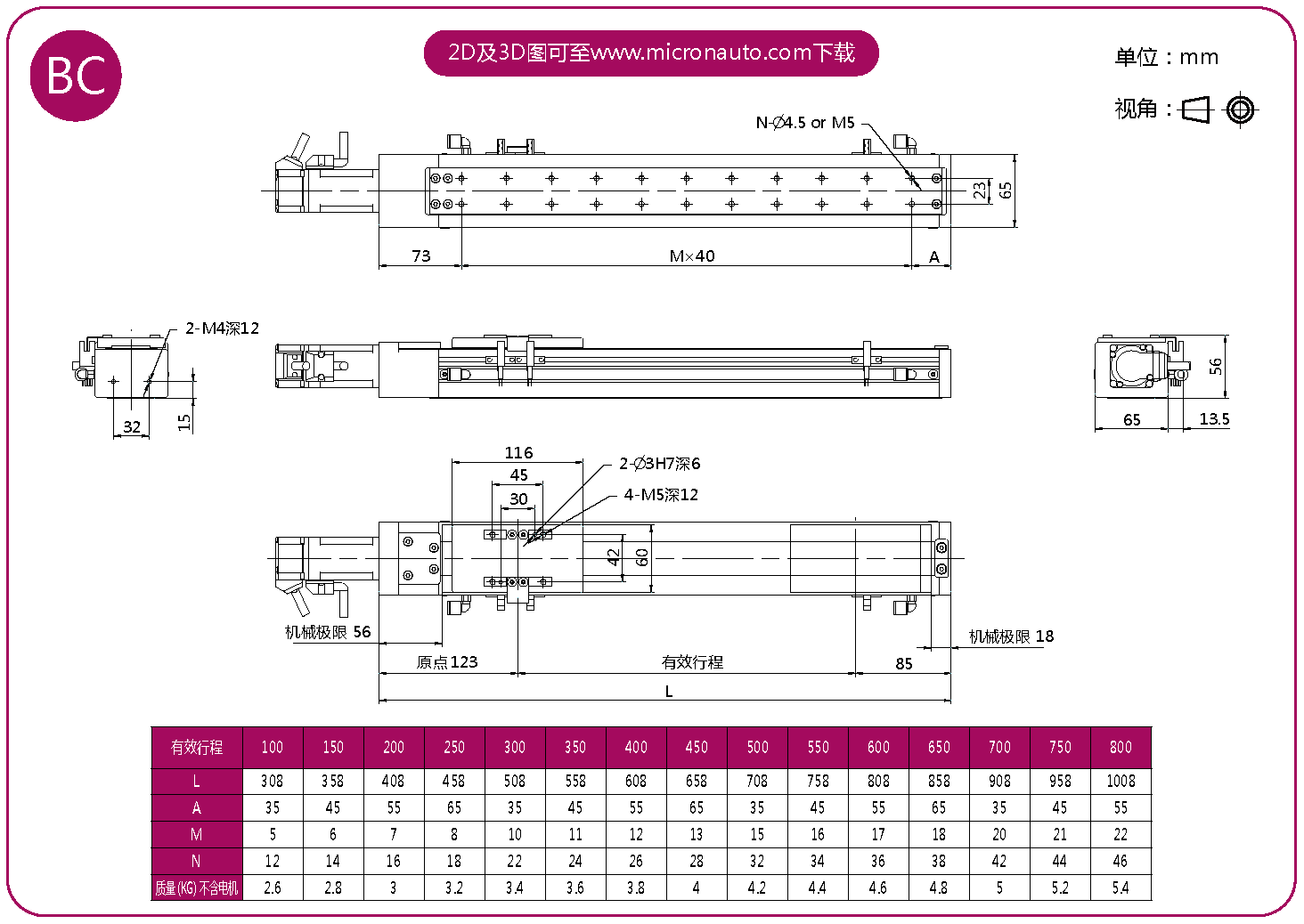 標(biāo)準(zhǔn)有效行程: 100~800mm(間隔50mm)