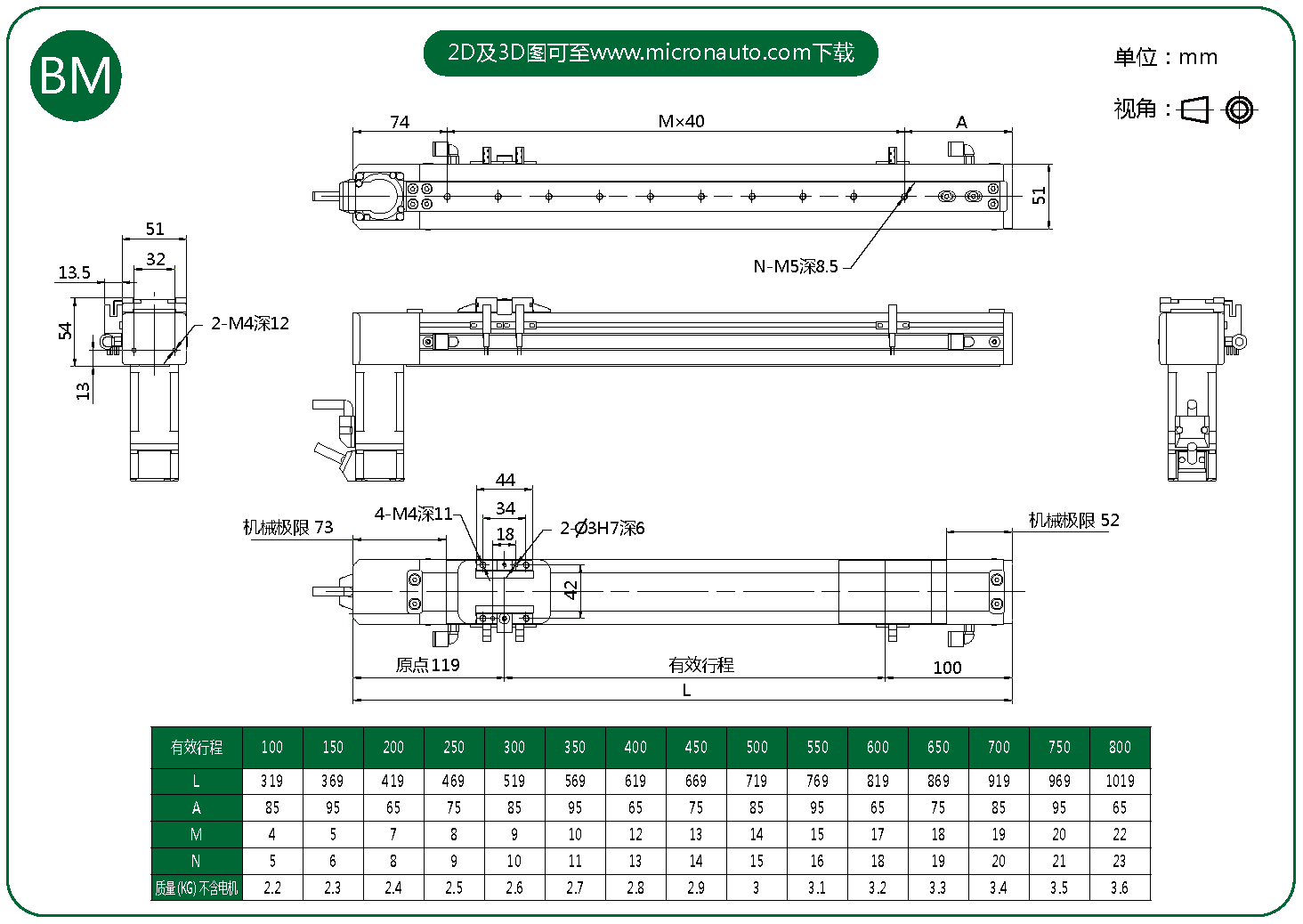 標(biāo)準(zhǔn)有效行程: 100~800mm(間隔50mm)