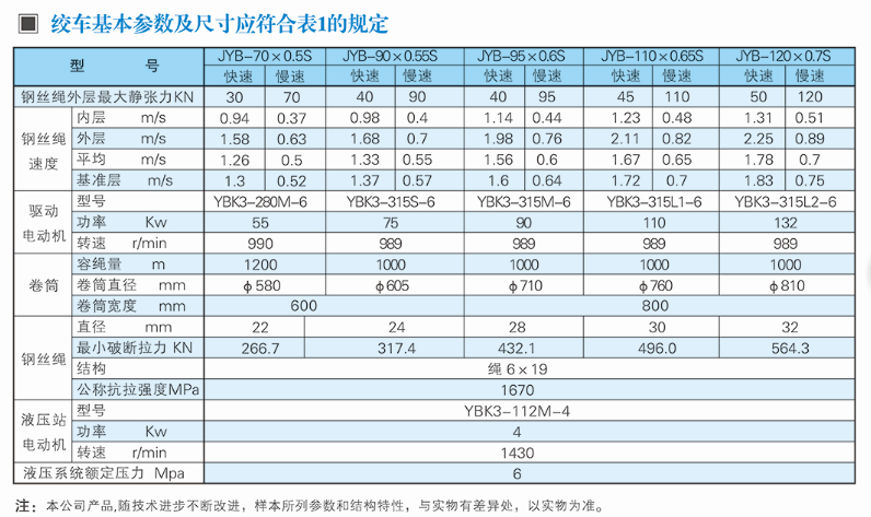 雙速運(yùn)輸絞車(chē)由電動(dòng)機(jī)、行星差速器、快慢速變速閘、卷筒、末級(jí)行星傳動(dòng)裝置、工作制動(dòng)閘、安全制動(dòng)閘、深度指示器、底座、液壓站及電控系統(tǒng)組成。具有以下特點(diǎn):