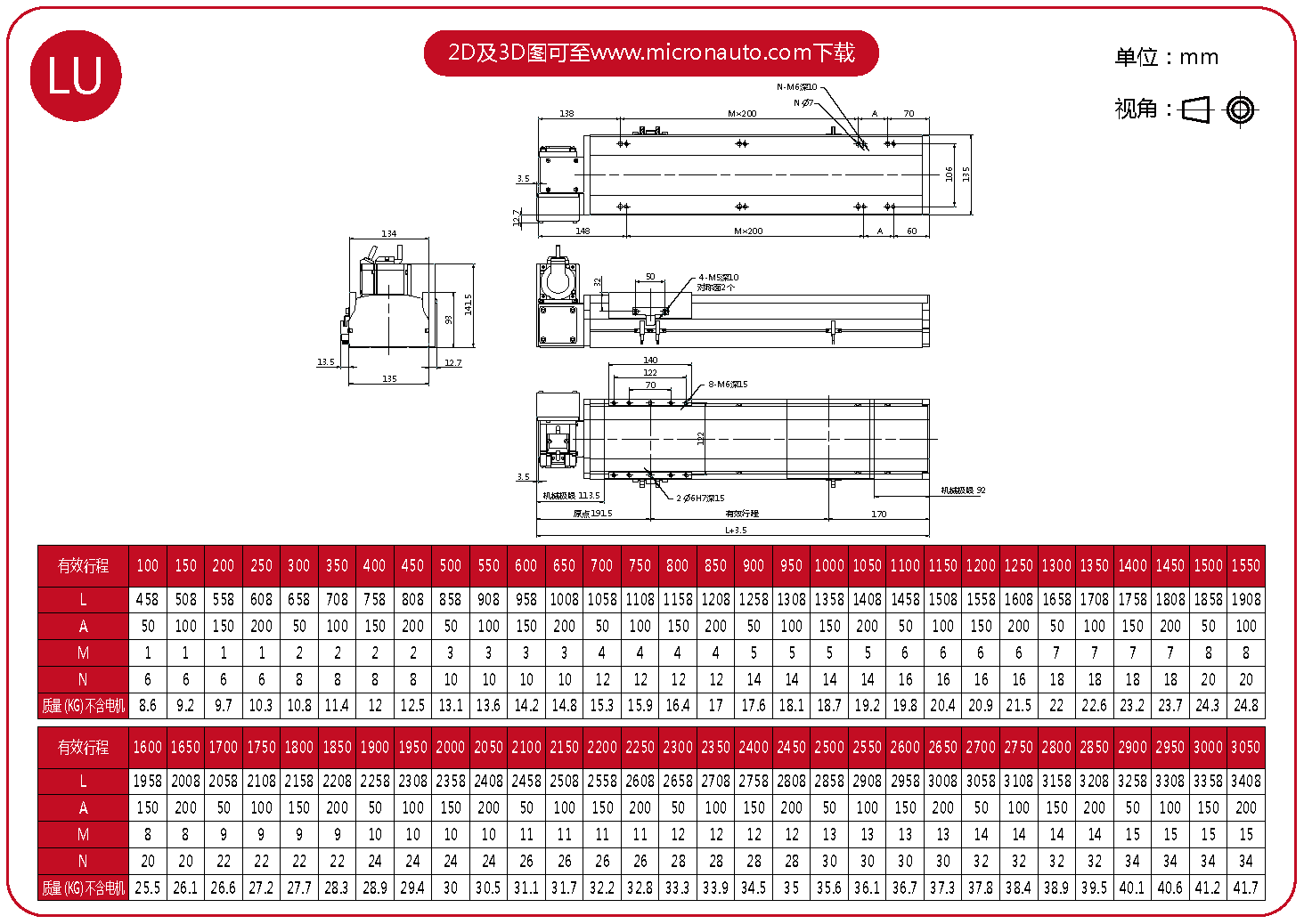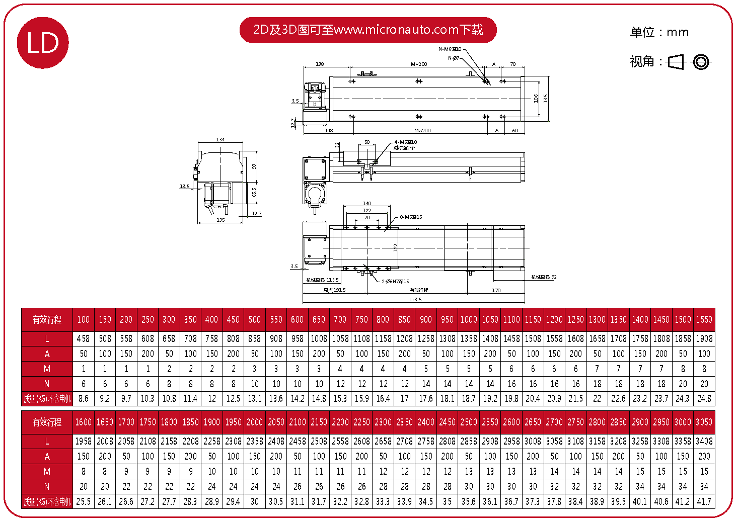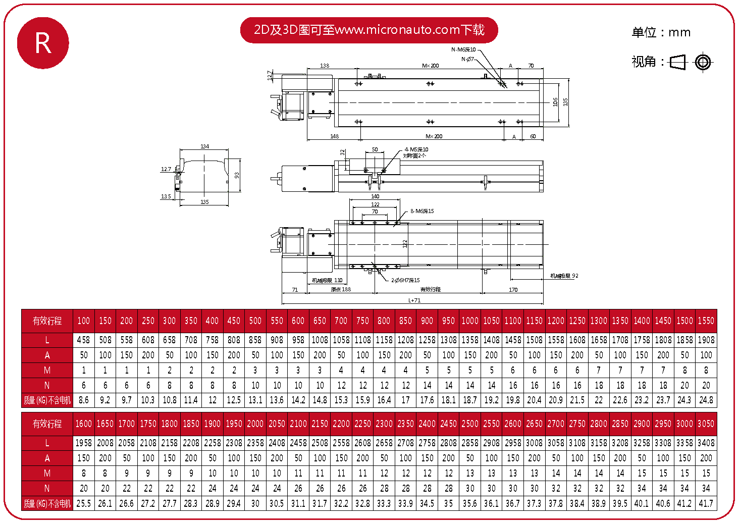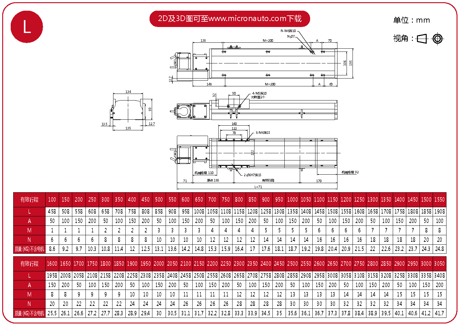 標(biāo)準(zhǔn)有效行程: 100~3050mm(間隔50mm)